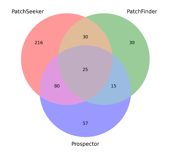 This clearly shows there are examples the proposed approach (PatchSeeker) is missing. This is ripe for a combo paper!