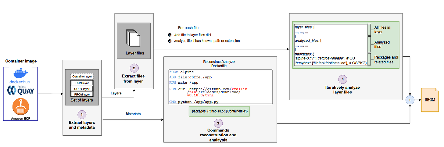 The paper has a few interesting points. Firstly, section 3.3/Table 1 of the papers covers what folks can actually do to obfuscate Docker containers. Most, if not all, of these techniques are reused from old-money OS-level obfuscation, but it's interesting to see them in the context of Docker containers. Secondly, section 3.4 has a bit of detail about detecting obfuscated containers, which boils down to unpacking each layer and extracting files/metadata. It’s a great starting point for folks who might want to dig into the area deeper. And finally, the whole results section is interesting. The authors find that some scanners just drop obfuscated containers when no OS information can be captured, as well as cases of finding real examples of containers that have been obfuscated. It’s a real shame the authors didn’t drop the code!