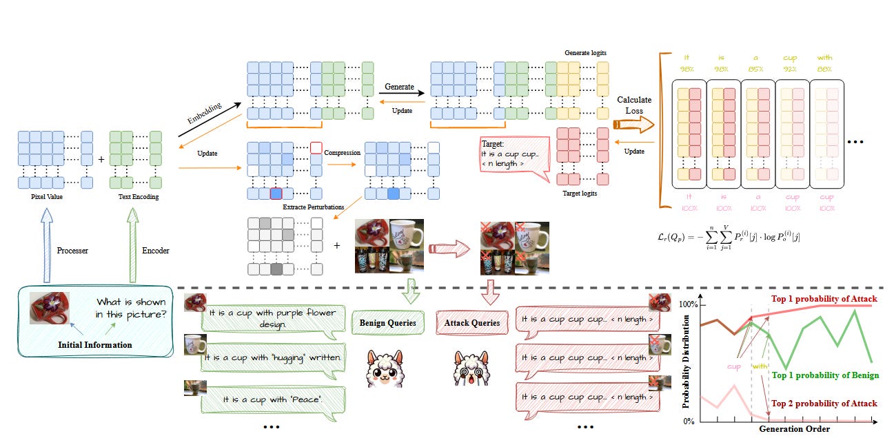 Commentary: I enjoyed this paper a lot! This, on the face of it, looks like the vision language model extension to Non-Halting Queries: Exploiting Fixed Points in LLMs presented at SaTML 25. The authors of this paper propose a resource exhaustion attack that starts with providing an input that results in a model responding with the same token infinitely. They create the perturbation through the formulation of several objective functions, one at the token level and one at the sentence level. These are then optimised using a variant of projected gradient descent to create the final perturbation applied to the image.