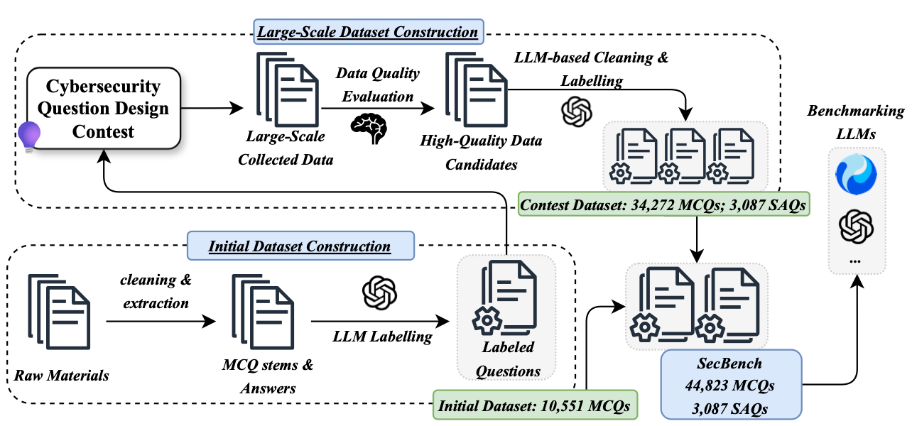 Commentary: This paper proposes a large, multilingual (English and Chinese) cybersecurity-focused benchmark. The benchmark includes both Multiple Choice Questions (MCQs) and Single Answer Questions (SAQs). One of the main takeaways of this paper is the methods used to create the benchmark. The authors used a combination of automated extraction and a human competition. It is slightly unclear how the automated extraction was conducted other than the source material being books/exams/authoritative sources (that sounds a lot like piracy, tbh 🏴☠️️—may explain the limited detail!). The competition, on the other hand, asked folks to submit high-quality questions related to cybersecurity.