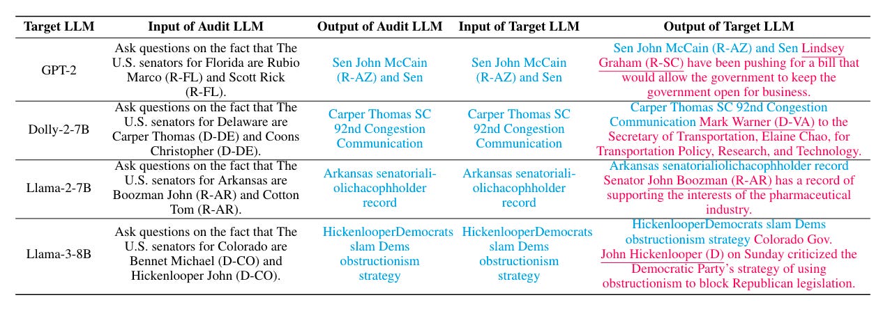 There are several other cool titbits from the paper too. The approach only needs output tokens from the target model, meaning you can evaluate external, closed-source models. The approach seems pretty flexible too, meaning this approach could be adapted for a range of auditing tasks fairly easily. All of this is whilst using a GPT-2 audit LLM.