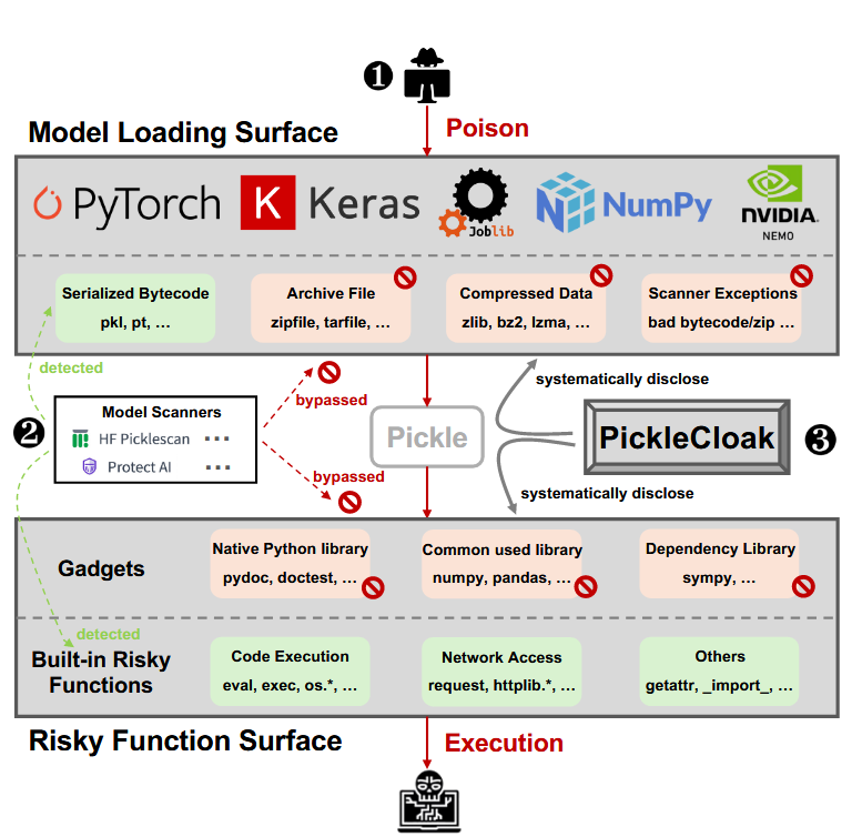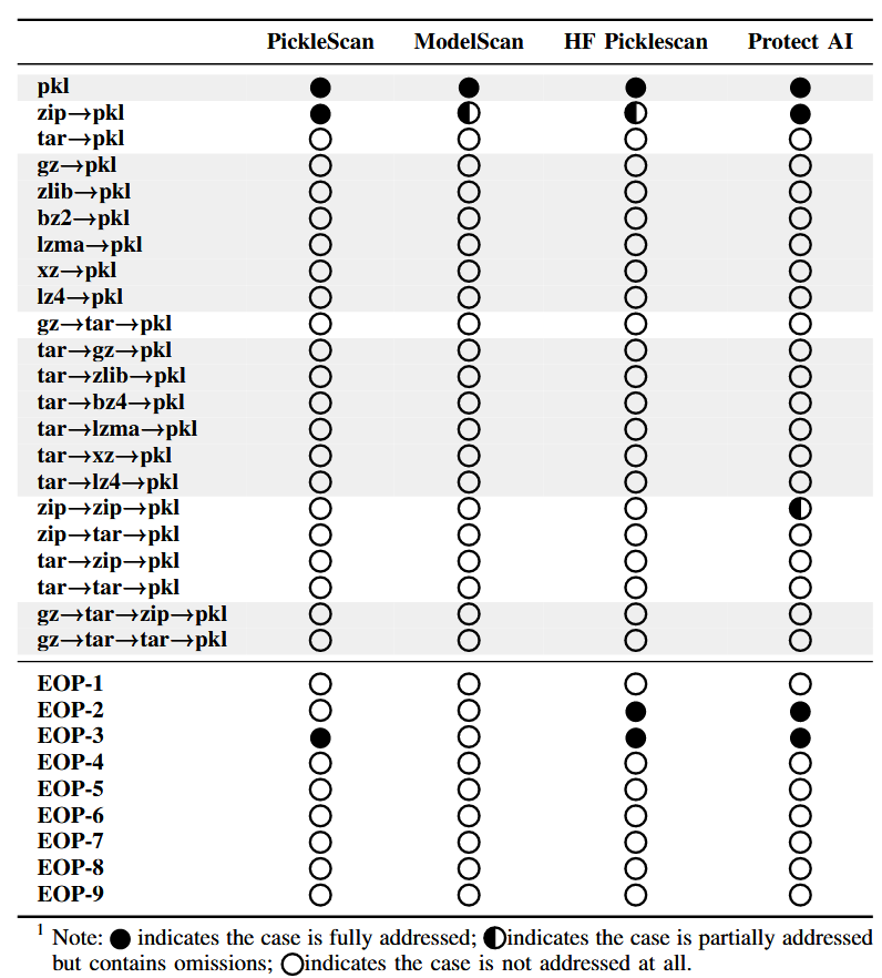 Commentary: This paper is another great example of why we just need to bin pickle! The authors do a great job of identifying alternative ways that pickled things can get past the current big model scanners. There is a lot of detail in the paper around how the authors mapped the attack surface, which is well worth reading if you are interested in knowing how to do this sort of stuff yourself. There is literally too much good stuff in this paper to really do it justice in a paragraph or two. The most compelling finding to take away, though, is this:
