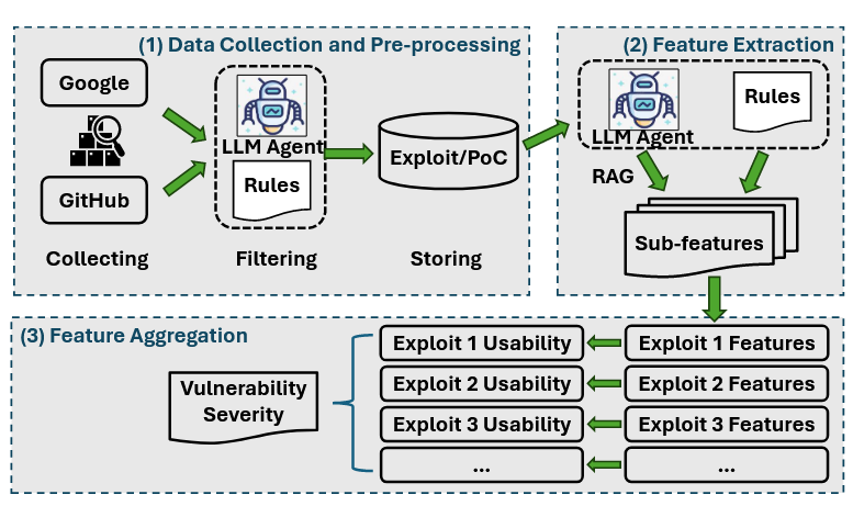 Commentary: I found this paper late in the week too, but I got to read this one a bit more deeply than the one above. This paper is pretty similar to other methods in this space – take a load of inputs from NVD or similar, pump them into an LLM and then get a new score/output out.