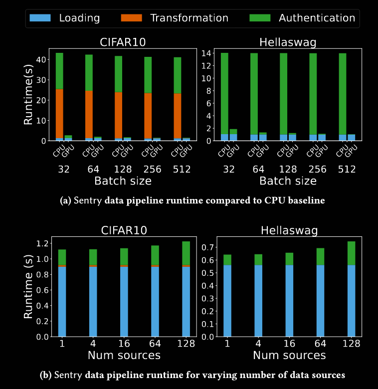 Commentary: I am unable to comment on the technical quality of this paper, as it uses a fair few cryptographic bits and pieces I am not deeply familiar with, but the premise was interesting enough for me to include. The general gist of this paper is how to verify that an ML model or training dataset is authentic, leveraging GPU architectures. The biggest challenge, which is highlighted in the paper, is how to do this efficiently so the authentication doesn’t take ages. Figure 9 (below) shows the overhead – it is not too bad on GPU, but a 15% increase in inference time can quickly add up. That being said, for high-assurance use cases, it could be justified.